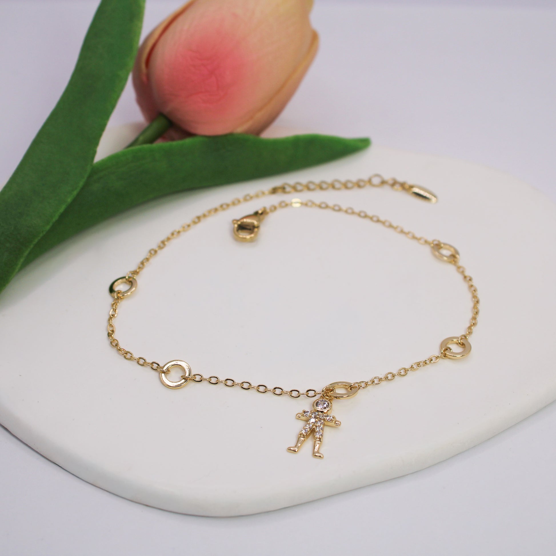 This anklet measures 10 inches in length with an adjustable range of 8.7 inches and 2 mm in thickness.